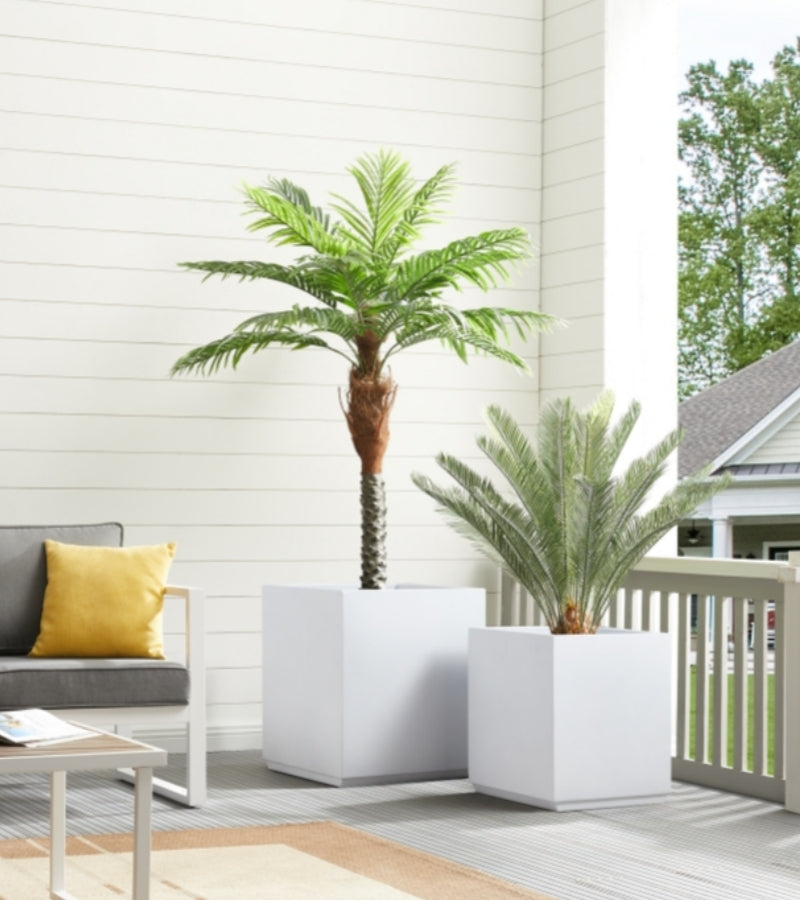Metal Large Cube Planter Box for Tree 21x21x24H White 43Pounds