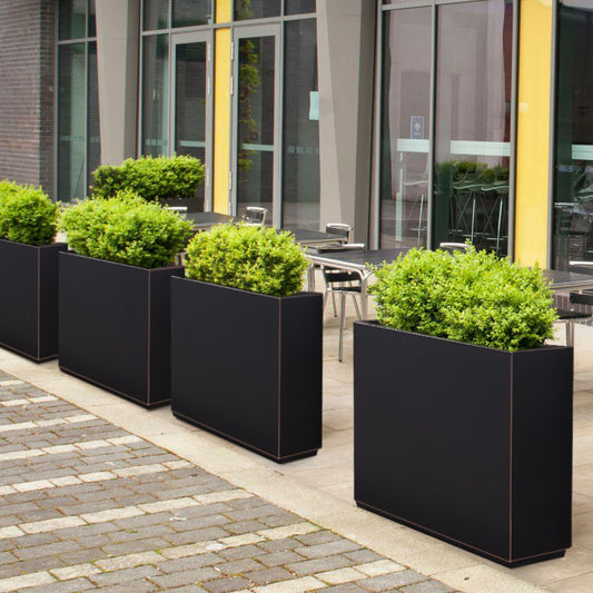 Black rectangular planters can create striking contrasts when paired with vibrant greenery or colorful blooms, making them stand out as captivating focal points. Made from metal, they are highly durable and weather-resistant, which makes them suitable for long-term outdoor use, withstanding exposure to elements such as sunlight, rain, and temperature fluctuations.