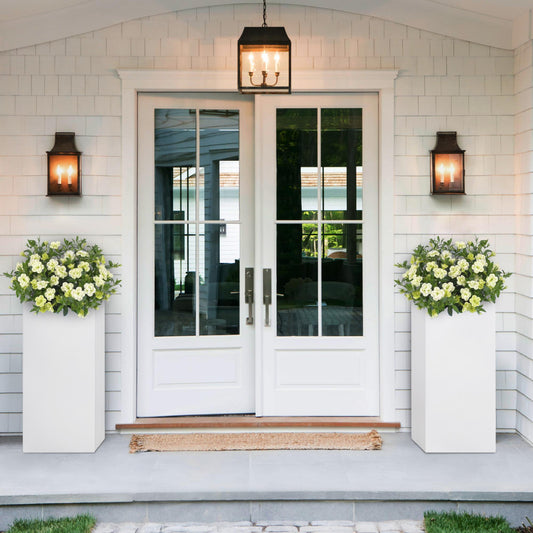 Outdoor white planter boxes can create a fresh and modern aesthetic, and complement a wide range of plant types and outdoor decor styles. They add a living, natural touch to your spaces and offer endless possibilities for creating unique and captivating settings, such as their ability to brighten and visually enlarge outdoor spaces, and their capacity to resist heat absorption, keeping plant roots cool during hot weather.