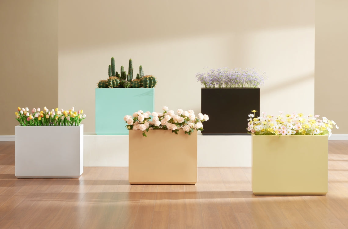 Discover how our metallic outdoor planters add a touch of sophistication and style to your patio or garden.