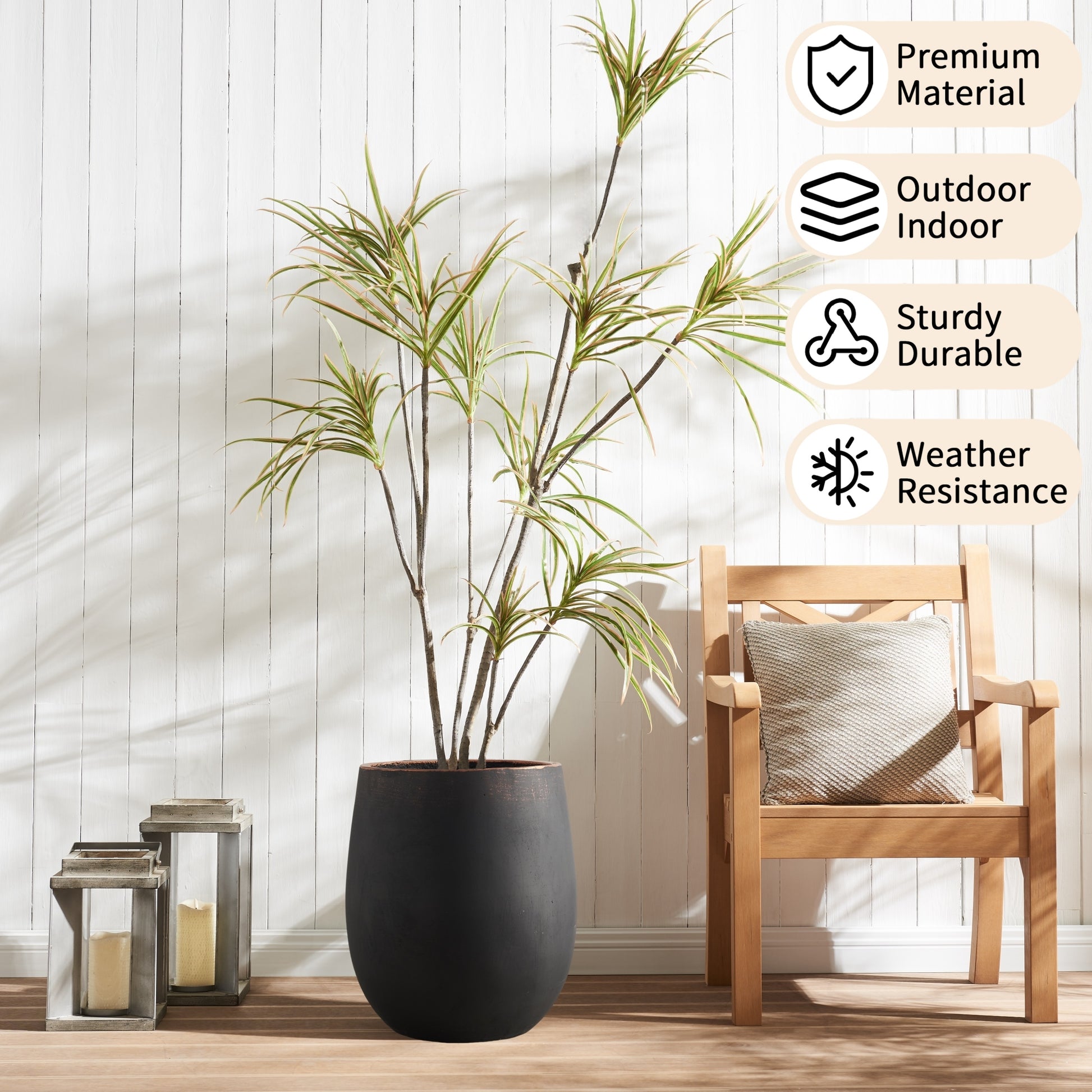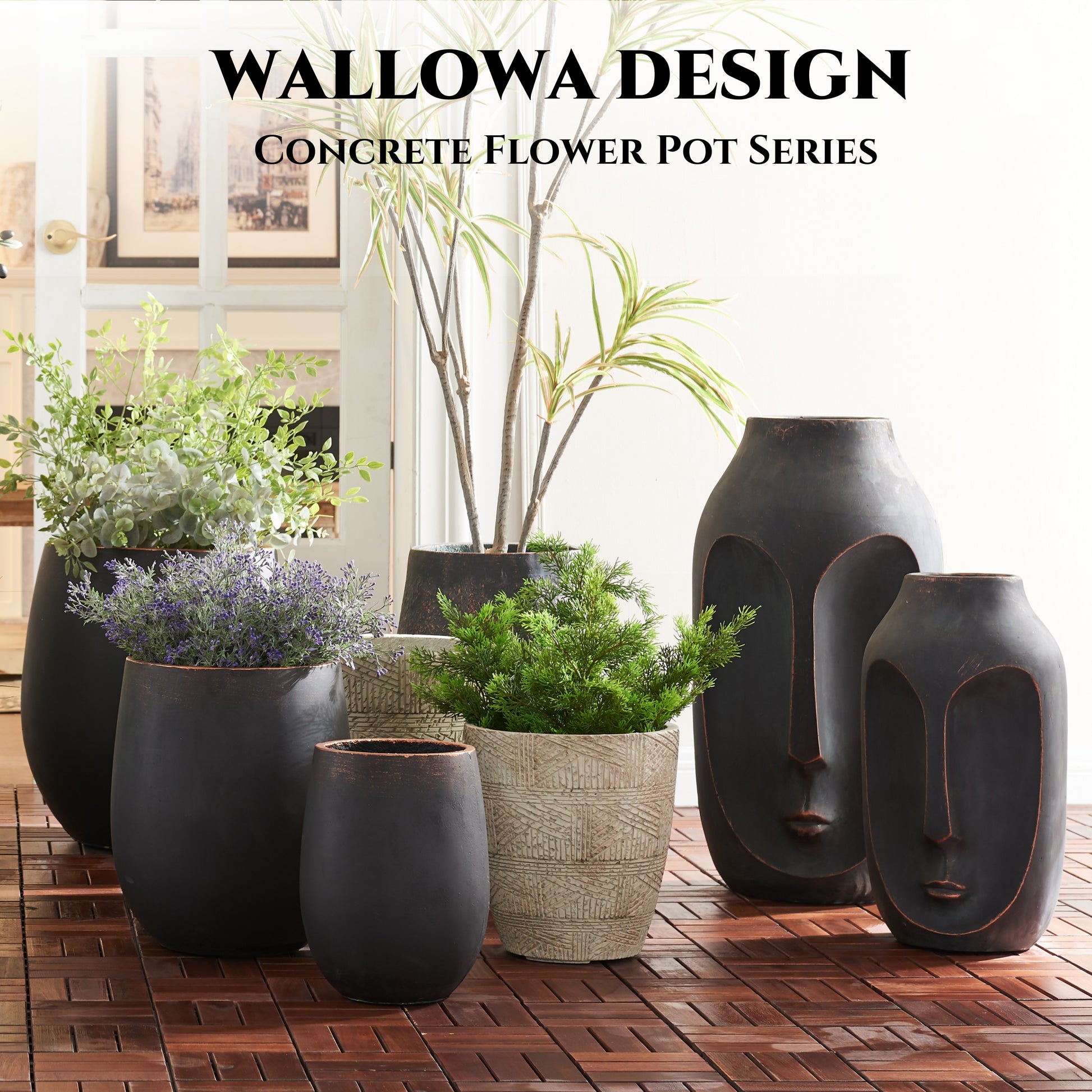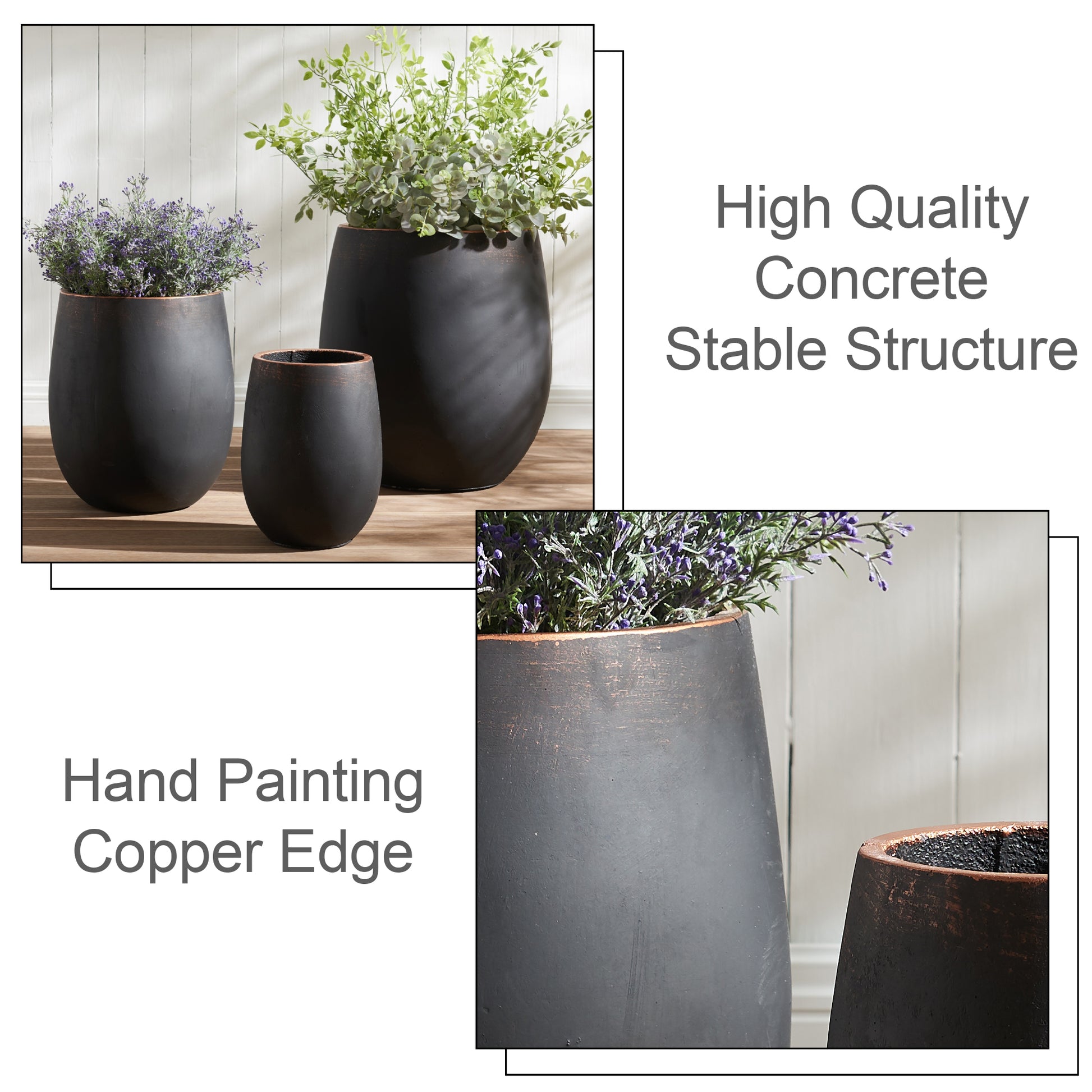 13.4" Dia x 15.5" H Concrete Planter, Outdoor Planter, Black with Gold Rim, Flower Pot with Drainage Hole and Silicone Plug, Plant Container for Garden, Patio, Home, Office, 1 Pack