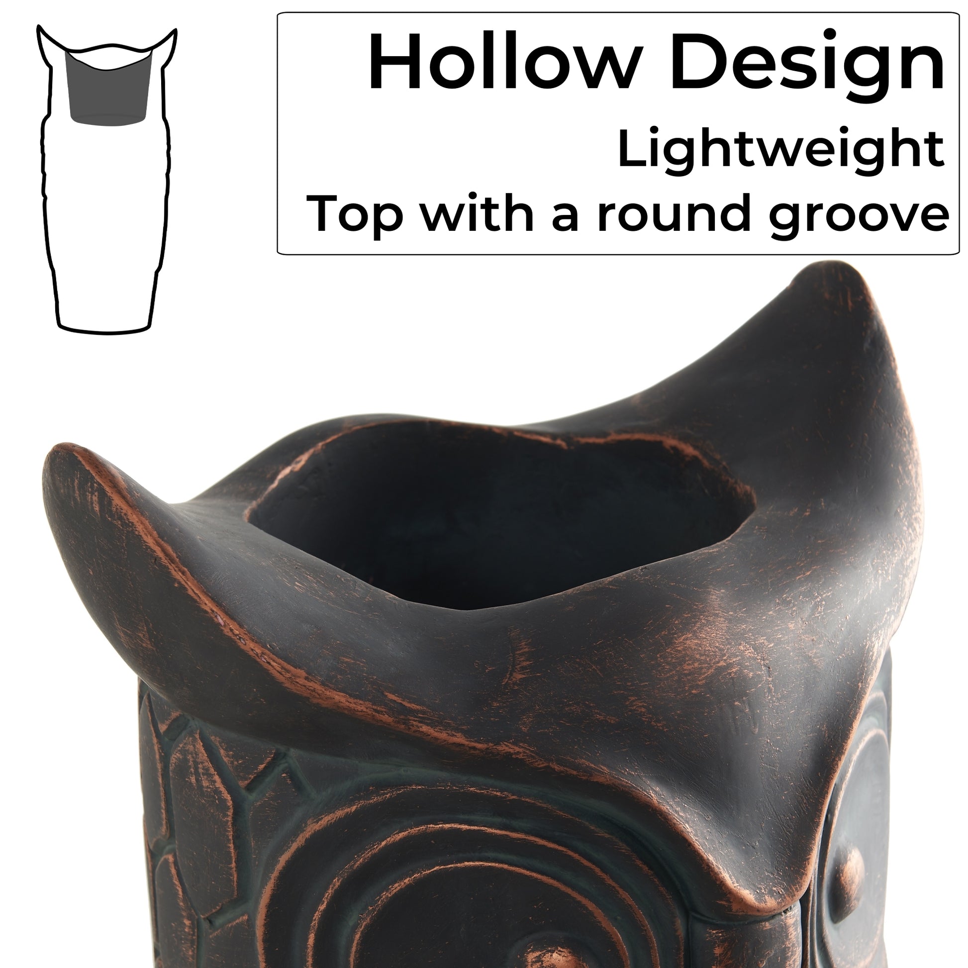 - Hand Painting - The surface of this owl sculpture is coated with multiple layers of paint, painted in a bronze patina finish to give it a weathered appearance. Use as self-standing decor in your home or patio.