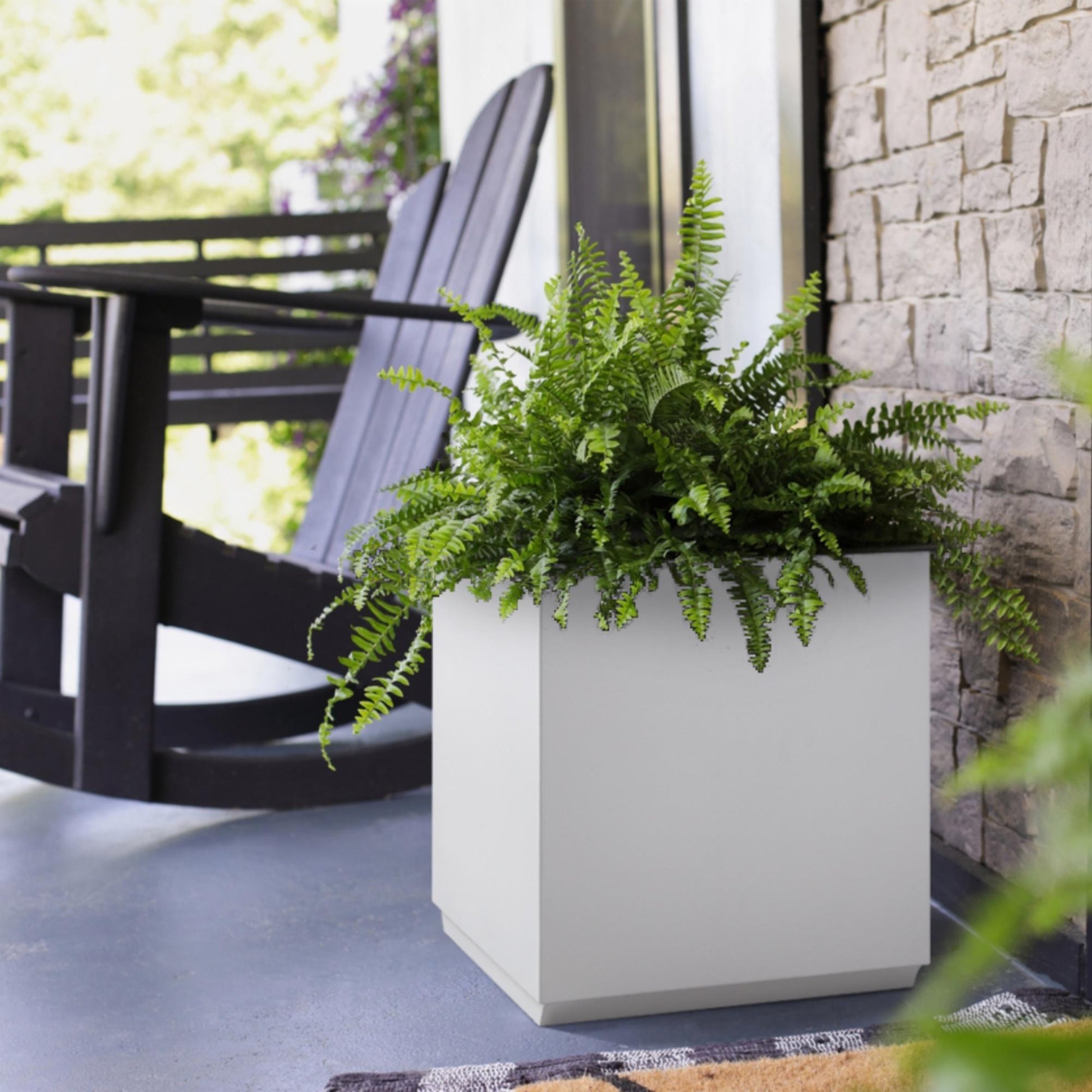 - MODERN LOOK: Strong, sturdy construction makes this large cube planter perfect for tall trees, plants and other greenery. Its pure white, modern appeal will spruce up your backyard, patio or entryway.