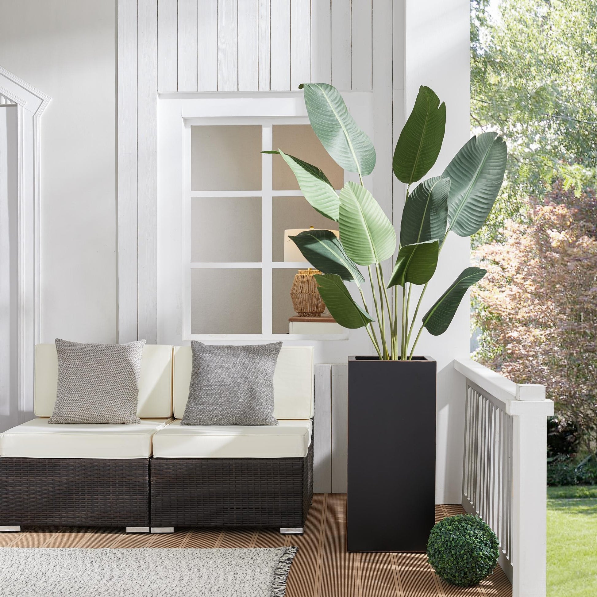 • Flexible outlays: This set of two black planter boxes offers flexibility in design and arrangement, allowing you to create eye-catching displays and arrangements throughout your outdoor space. Whether flanking an entryway or adorning a garden pathway, these tall black planters make a statement wherever they're placed.