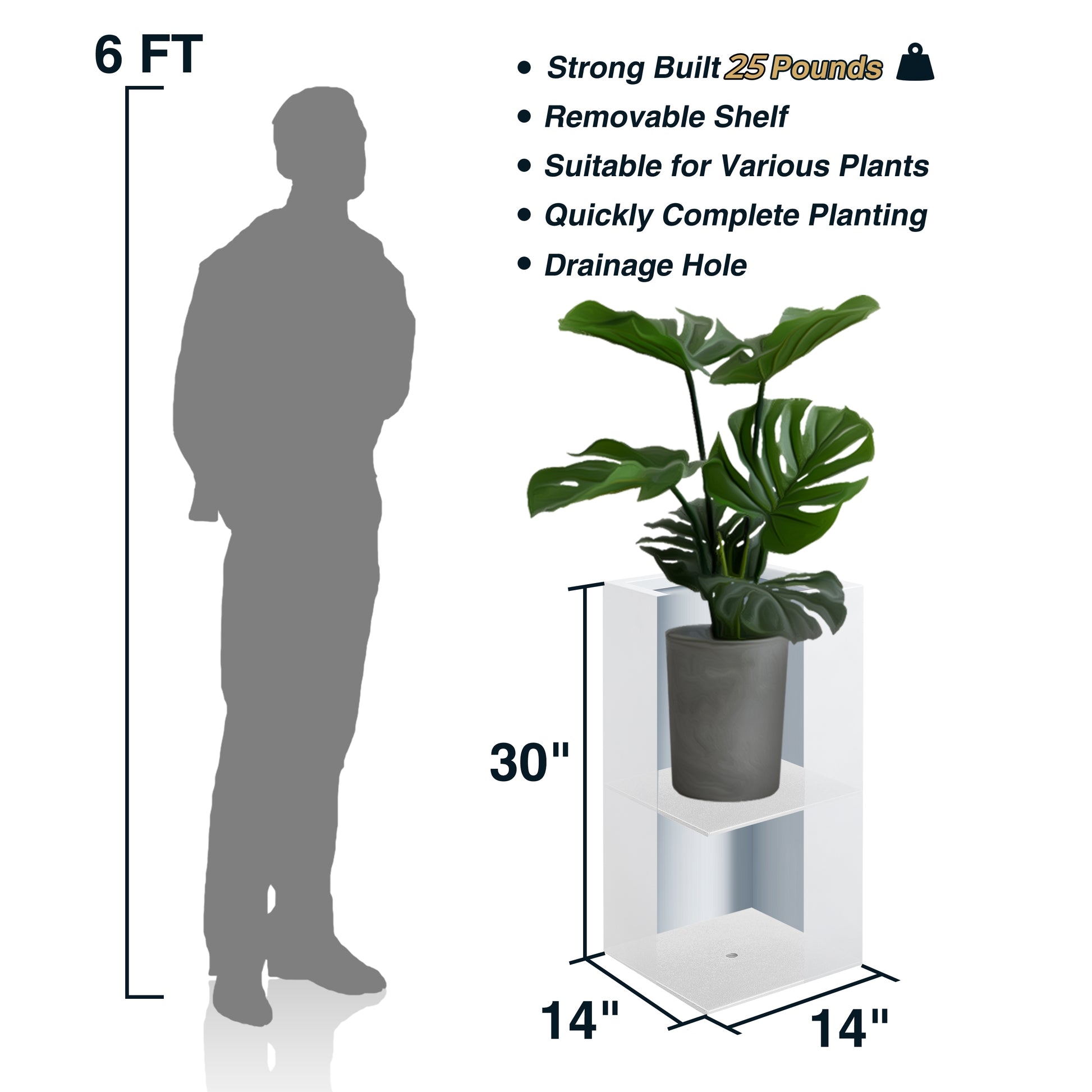 - INSERT SHELF & DRAIN HOLE: Equipped with removable shelf, perfect for various plants. Two bottom drainage holes + sealing plugs; open plugs to drain, but beware of mess.