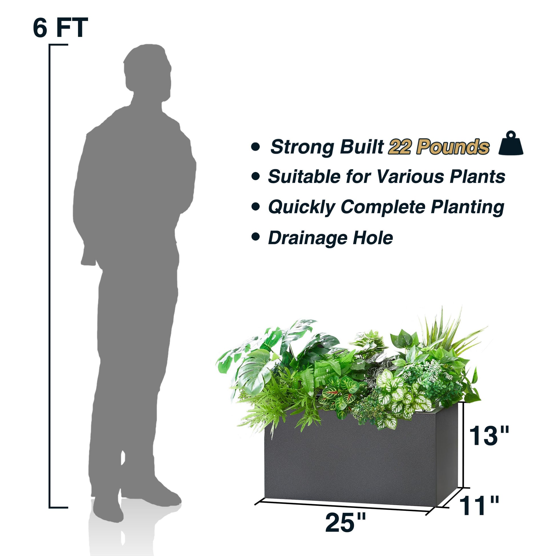 - GARDEN DECOR: This gorgeous large planter box is suitable for garden decoration with its stylish design and sturdy construction. It can also be used to decorate the entrance, front porch, balcony, patio, deck or indoor hall with its modern appeal.